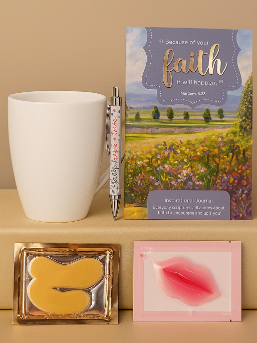 Our mainstay is here to stay. This aesthetically pleasing set with pink lettering is the signature Beauty Prays collection. This luxury gift bundle promotes holistic wellbeing with faith infused products. The lady who embodies faith and beauty needs this premium experience. Make every day a Spirit and Soul Care day